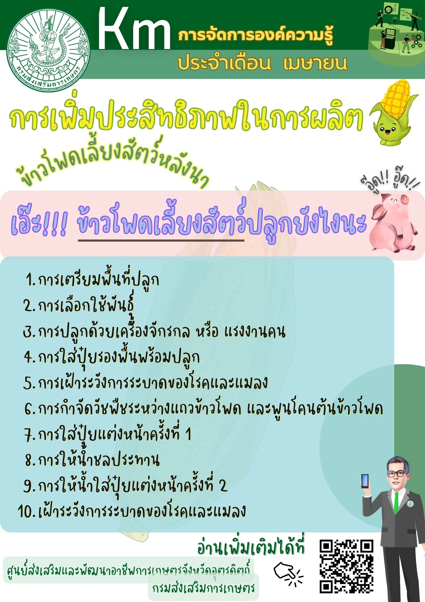 การเพิ่มประสิทธิภาพการปลูกข้าวโพดเลี้ยงสัตว์หลังนา "เอ๊ะ!! ข้าวโพดเลี้ยงสัตว์ปลูกยังไงนะ" :: อ่านต่อ :: |
