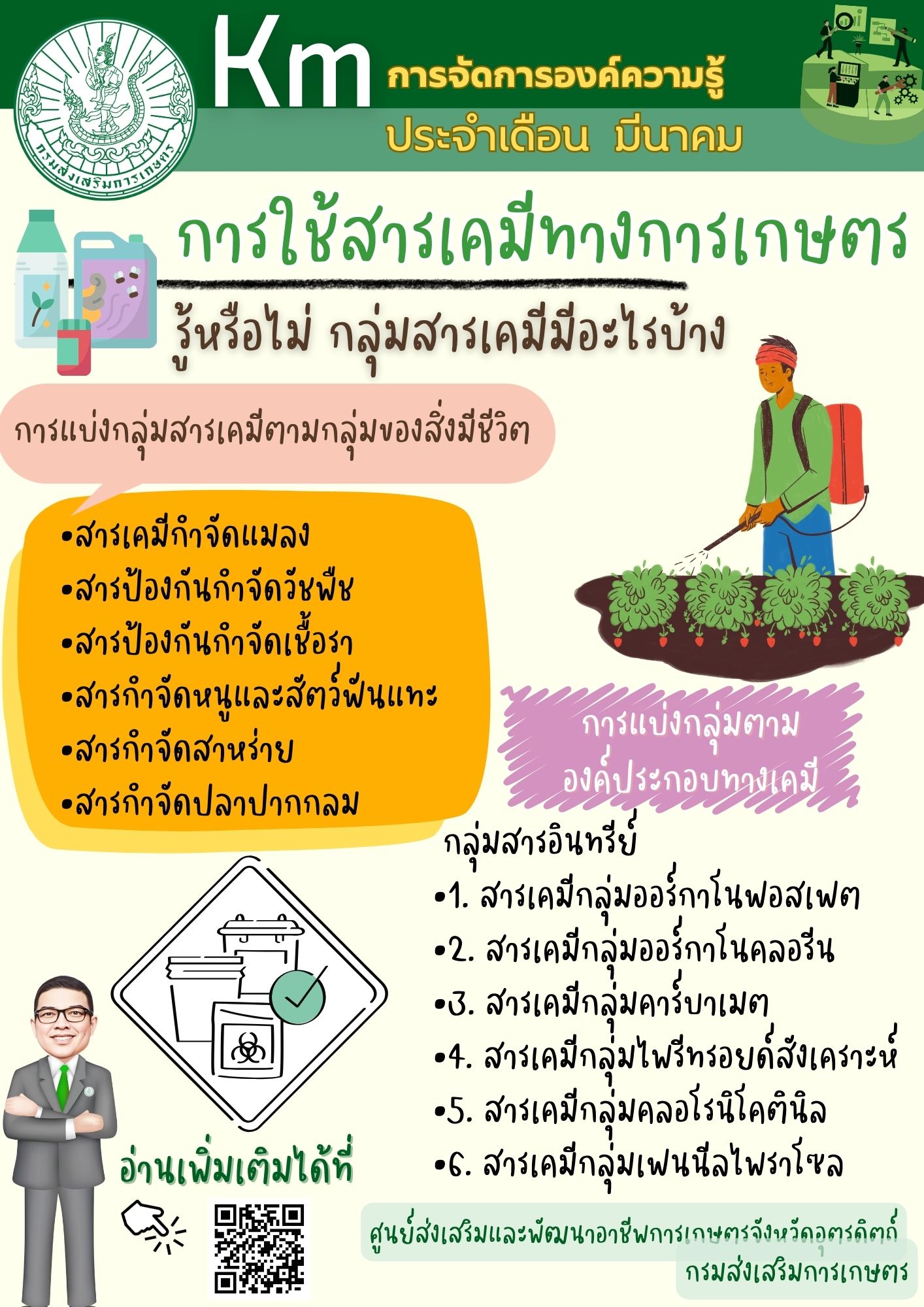 การใช้สารเคมีทางการเกษตร "รู้หรือไม่ กลุ่มสารเคมีมีอะไรบ้าง" :: อ่านต่อ :: |